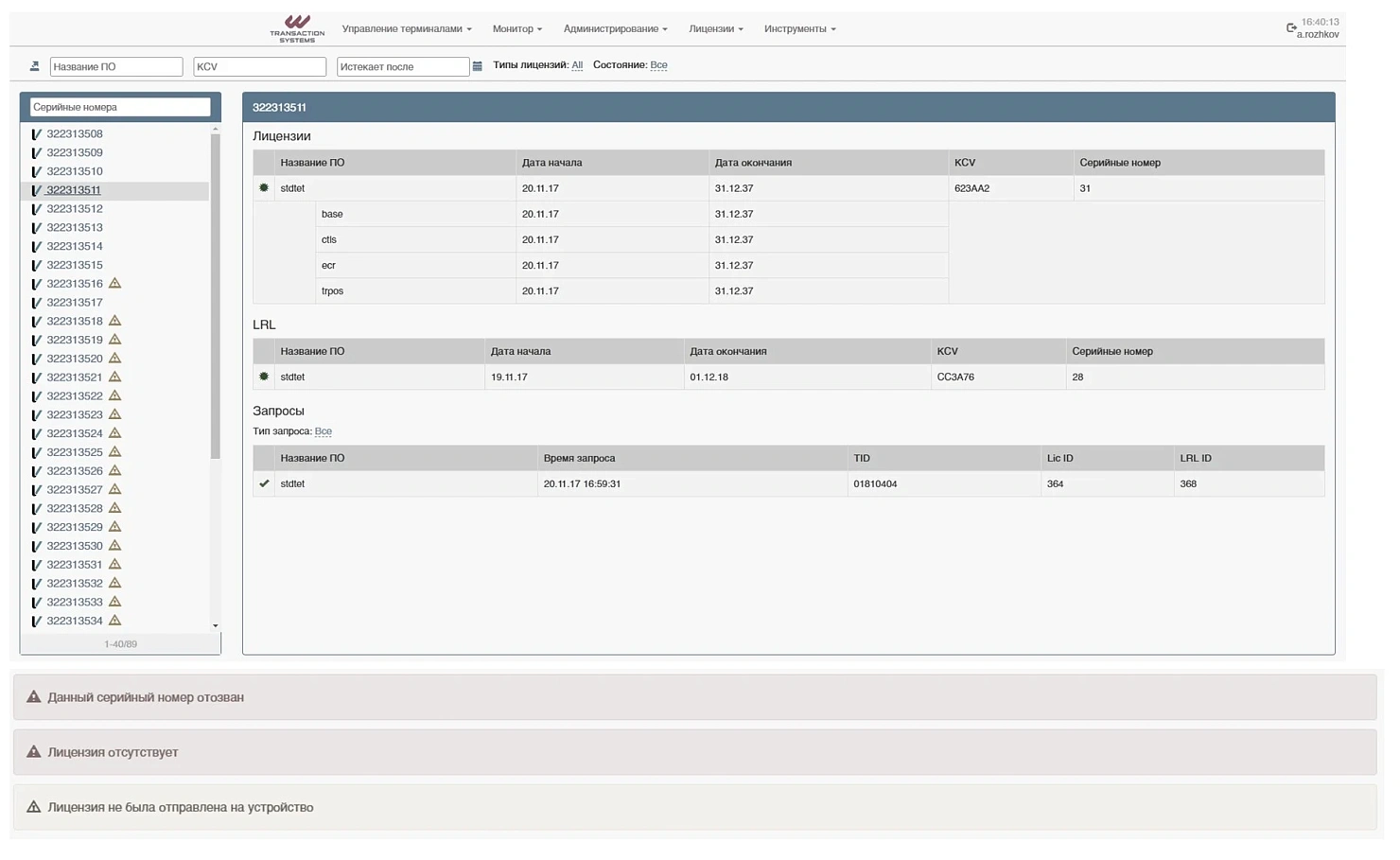 Загрузка лицензии на терминал